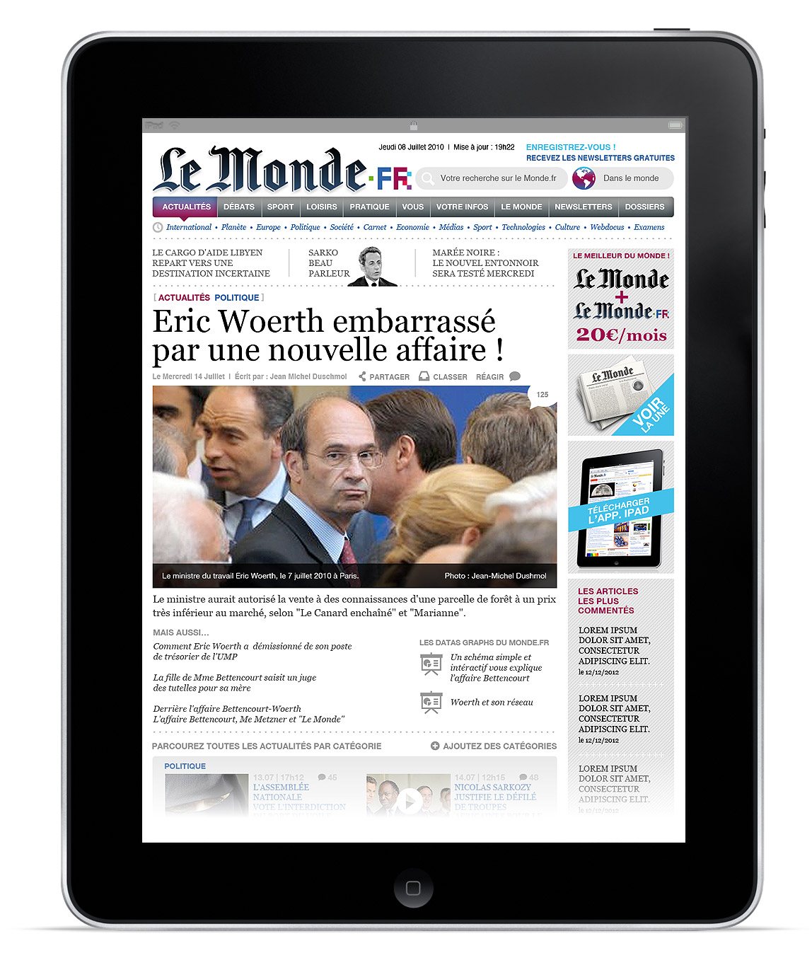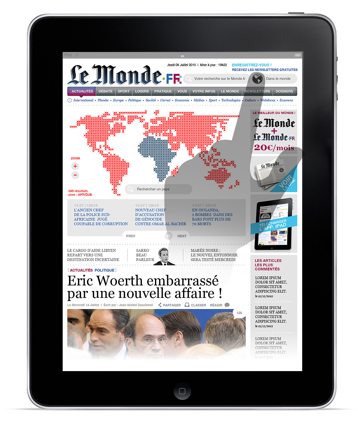 Loguy, directeur artistique d’OWNI, a relevé le défi en prenant le temps de peaufiner sa copie. Voici le résultat sur IPad: