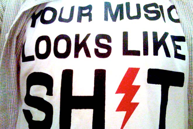 Ce méprisable fat et ses semblables ― ils sont faciles à reconnaître, puisqu’ils portent tous le même T-shirt, acheté il y a cinq minutes à l’entrée de la salle ― sont TOUS responsables de la perversion de l’Artiste et méritent ainsi les châtiments corporels qu’autorise encore la loi en société : regards hautains, écrasements de dauilles et épanchements de bière consécutifs à de feints faux mouvements, excusés par un distrait et dédaigneux « broaaaarfdon ». Et rien que pour le plaisir, d’ailleurs, on pourra même le fabriquer soi-même, ce T-shirt. Qui ira vérifier qu’ils avaient pas cette gueule-là , les T-shirts Radiohead, en 1983 ?