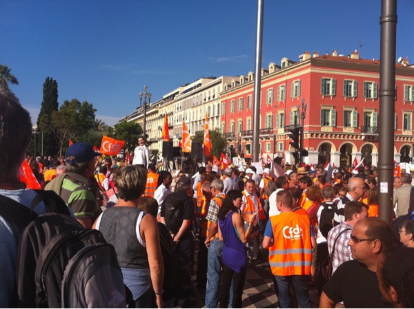 [MàJ 11h30] Par ailleurs, les premiers échos du sud-est, notamment à Marseille font également état d’une manifestation plus suivie que celle du 7 septembre. “Le départ prend du retard tellement il y a du monde sur place” précise le journal La Provence. On rapporte également un nombre très important de manifestants à Clermont-Ferrand, Perpignan et à Nice, où le départ du cortège a également pris du retard. – M.U