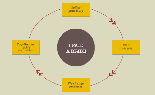 Le but de I Paid A Bribe est d’encourager toujours plus de citoyens à venir raconter leurs histoires et expériences, ce qui permet d’accroître la prise de conscience. Outre des signalements de corruption, la page principale du site présente un diaporama regroupant des statistiques essentielles. Une carte intitulée “Corruption Commons” situe le nombre de plaintes dans différents états du pays.  L’importance du sujet est révélée à travers ces différents moyens, faisant passer la corruption et les pots-de-vin de quelque chose dont tout le monde se plaint, à un problème contre lequel les gens ont un moyen d’agir. Les internautes peuvent agir au travers d’un procédé simple, et sûr, où il ne leur est pas demandé de s’identifier ou de donner les noms des fonctionnaires dénoncés dans leurs signalements.