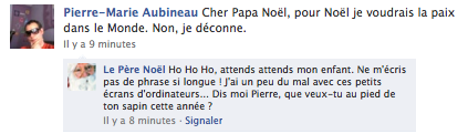 Sur Facebook, depuis quelques jours, certains de mes « friends » sont en contact avec le Père Noël. Jusque-là, rien d’anormal, puisqu’on trouve tout – et surtout n’importe quoi – sur Facebook. Alors pourquoi pas le Père Noël.