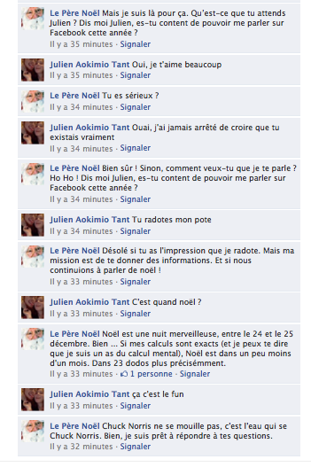 Quand le Père Noël est un automate pas très affiné qui officie sur Facebook, cela peut donner des échanges très LOL avec des adultes un peu farceurs.