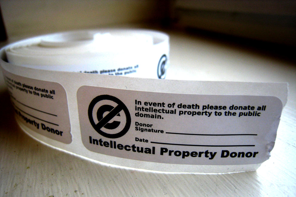Le blog IPKat se fait l’écho du lancement par un certain Evan Roth d’une carte de donneur de propriété intellectuelle ! L’idée – géniale – consiste à porter en permanence sur soi la carte ci-dessous, qui certifie que vous acceptez que l’ensemble des œuvres que vous avez créées tout au long de votre vie soient immédiatement versées dans le domaine public, suite à votre décès.
