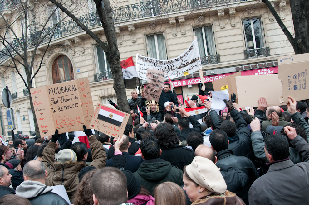 Le ton est donné par les manifestants rassemblés aujourd’hui à Paris près de l’ambassade d’Egypte. Dans la foule, de nombreux Égyptiens, mais aussi des Tunisiens et Algériens, venus “défendre la cause de [leurs] frères égyptiens” et relayer l’appel à la démission du gouvernement Moubarak.