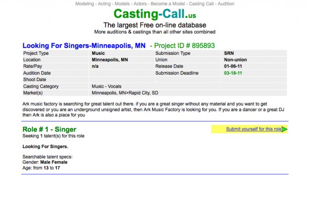 Quand on regarde d’un peu plus près le fonctionnement de la structure, on s’étonne de constater que le duo de producteurs concentre ses efforts musicaux sur une typologie très spécifique de “clients” : les garçons et filles de 13 à 17 ans, qu’ils attirent grâce à des petites annonces publiées sur des sites dédiés (voir ci-dessous).