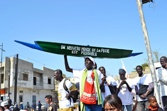 À bord des « navires-usines » sont traitées, conditionnées puis congelées, d’énormes quantités de poissons, rapidement expédiés dans les assiettes européennes, coréennes ou chinoises. Près de 70% des produits de la pêche du Sénégal sont expédiés vers l’Europe. Celle-ci importe (tous pays confondus) pour 15,5 milliards d’euros de poisson1 . « L’Afrique nourrit l’Europe ! », s’indigne Mamadou Diop Thioune, président du Forum des organisations de la pêche artisanale. « C’est un système de vol organisé du poisson en Afrique, à destination de l’Europe et d’autres pays. » De nombreux acteurs de la pêche au Sénégal, révoltés, se mobilisent pour ne pas rester avec une « arête en travers de la gorge » et tentent de s’opposer à ce système.