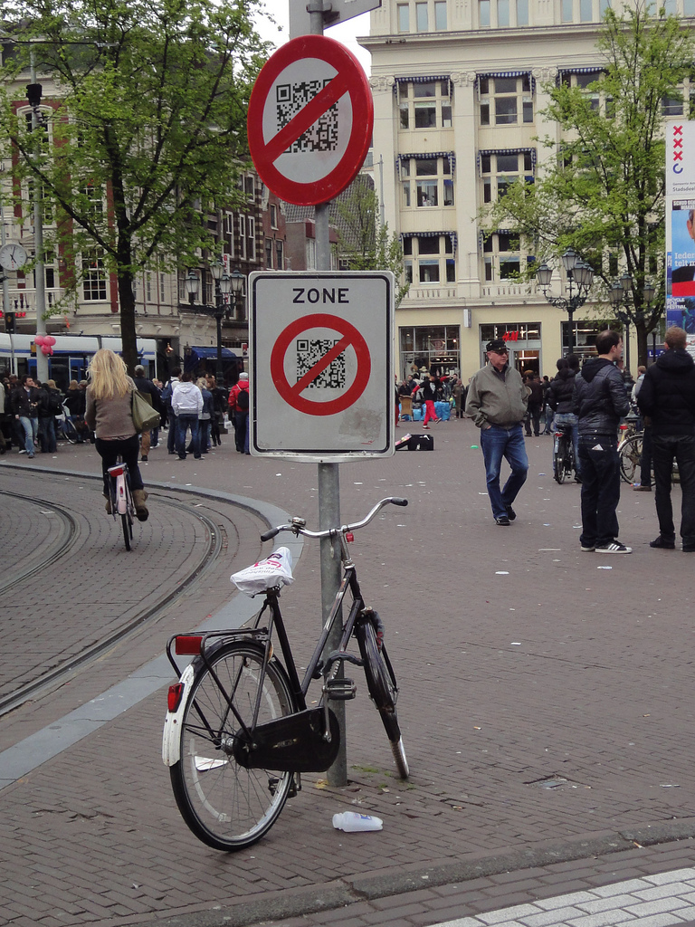 Difficile de dire si ces panneaux font partie ou non d’une démarche artistique, la photo ayant été publiée en mai 2010, soit bien avant la vraie-fausse exposition d’octobre. Mais après tout, qu’importe ? Le coeur du sujet réside dans les questions que soulève cette interdiction, et qu’elle soit artistique n’y change rien : “à qui appartient l’espace virtuel d’un espace physique ?”, s’interrogeait Sander Veenhof repris par Samuel Bausson.