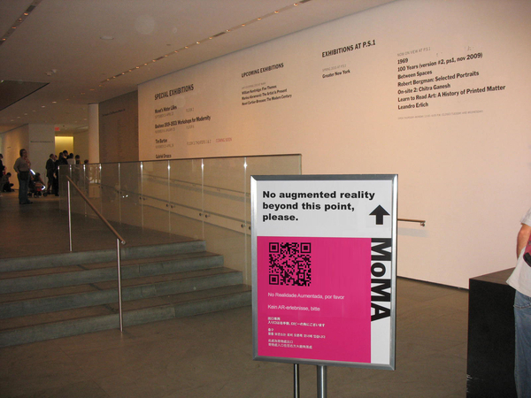 La performance prend toute sa saveur lorsqu’on la confronte à ces panneaux, installés par le MoMa, interdisant l’usage de la réalité augmentée [en] dans le bâtiment :