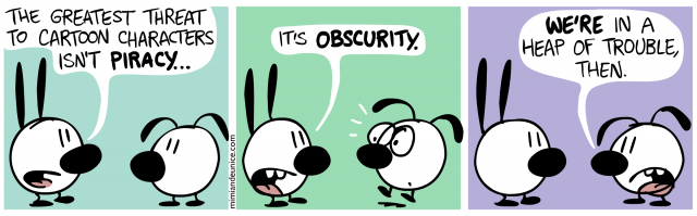 En effet, Nina a décidé de publier sous forme de petits livres papier (minibooks) les strips de Mimi et Eunice parlant de propriété intellectuelle. Cela s’appellera Mimi and Eunice Intellectual Pooperty et les livres eux-mêmes seront placés sous ♡Copyheart, permettant à tout un chacun d’en faire… exactement ce qu’il en veut, comme il veut !