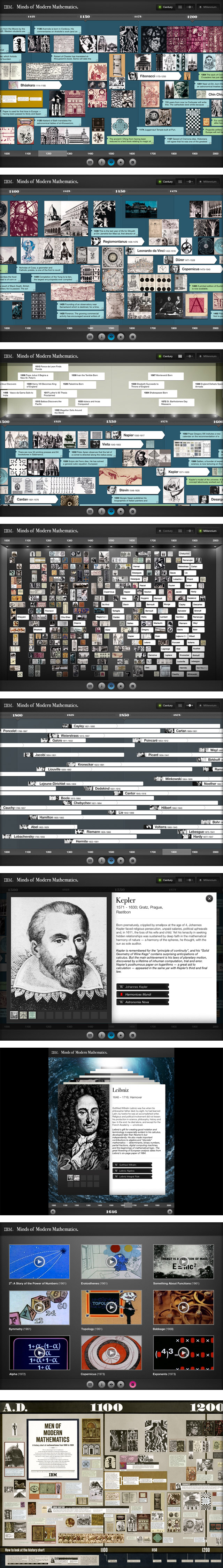 Voici une application iPad qui fait honneur à l’esprit des mathématiques modernes ! Cette histoire interactive des mathématiques couvre une période allant de l’an 1000 à 1950, et présente le lien profond entre IBM et l’équipe de designers légendaires Charles et Ray Eames. En 1950 lorsque les Eames ont été appelés par l’ex-PDG d’IBM, Thomas Watson, pour un film, leur passion commune pour les mathématiques et les sciences a pu être révélée au grand jour et ainsi évoluer en une relation rare entre IBM, les mathématiques et le design. Parfait donc pour les amoureux des chiffres, des sciences et du design.