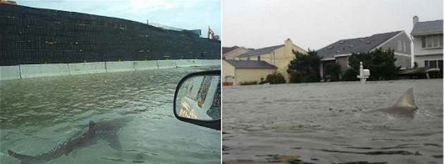 Parmi les images qui ont beaucoup circulé, on a aussi pu voir un certain nombre de photographies de requins circulant dans les villes inondées. Je ne suis pas certain qu’il y ait beaucoup de requins aussi haut qu’à New York à la fin du mois d’octobre, ces animaux n’aimant pas les eaux froides, mais l’idée du requin qui se balade dans le jardin est délicieusement effrayante.